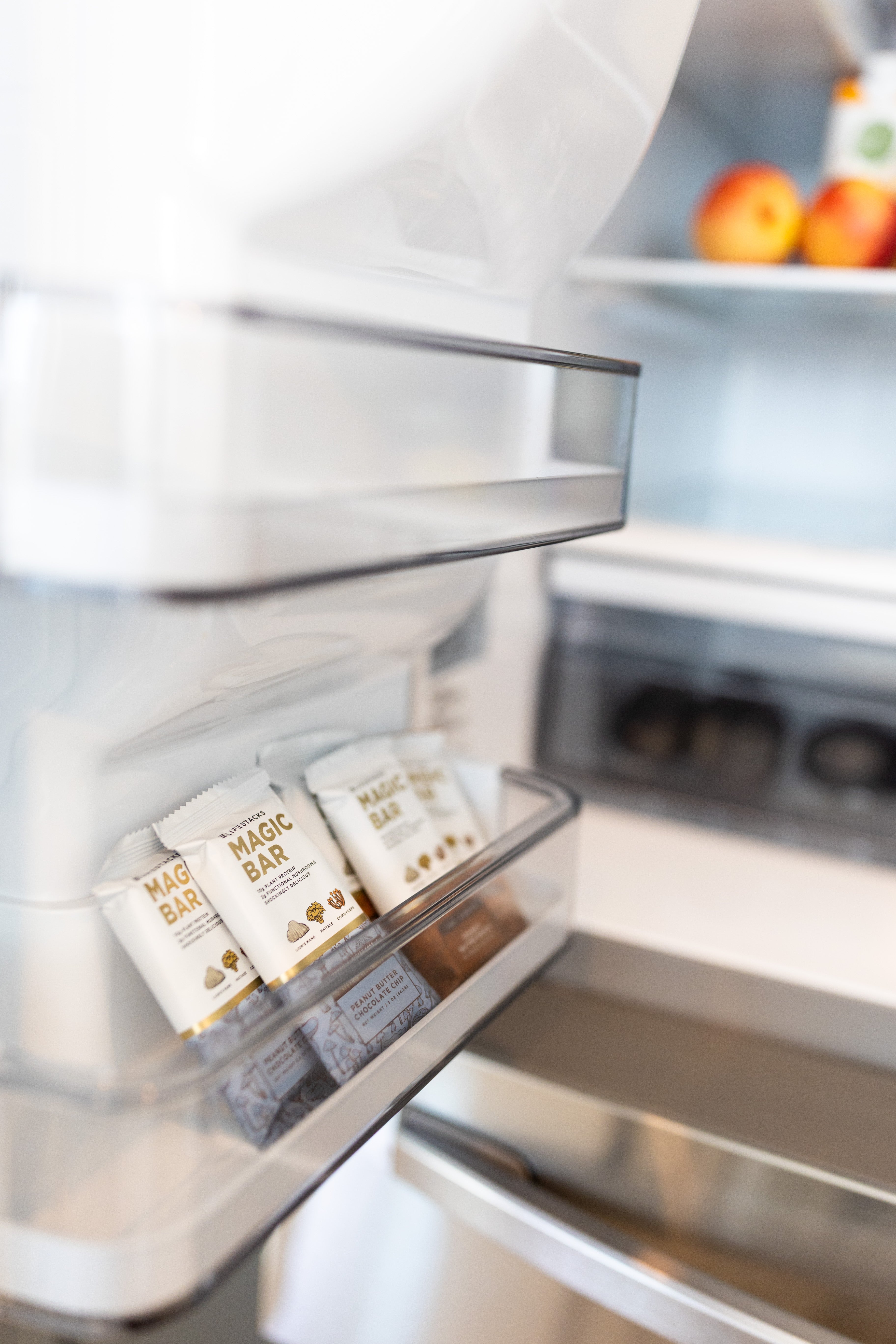 It's best to store Magic Bar in the fridge. If you prefer a firmer texture, you can also keep it in the freezer. That said, Magic Bar is shelf-stable for up to a week, so you can take it on the go!