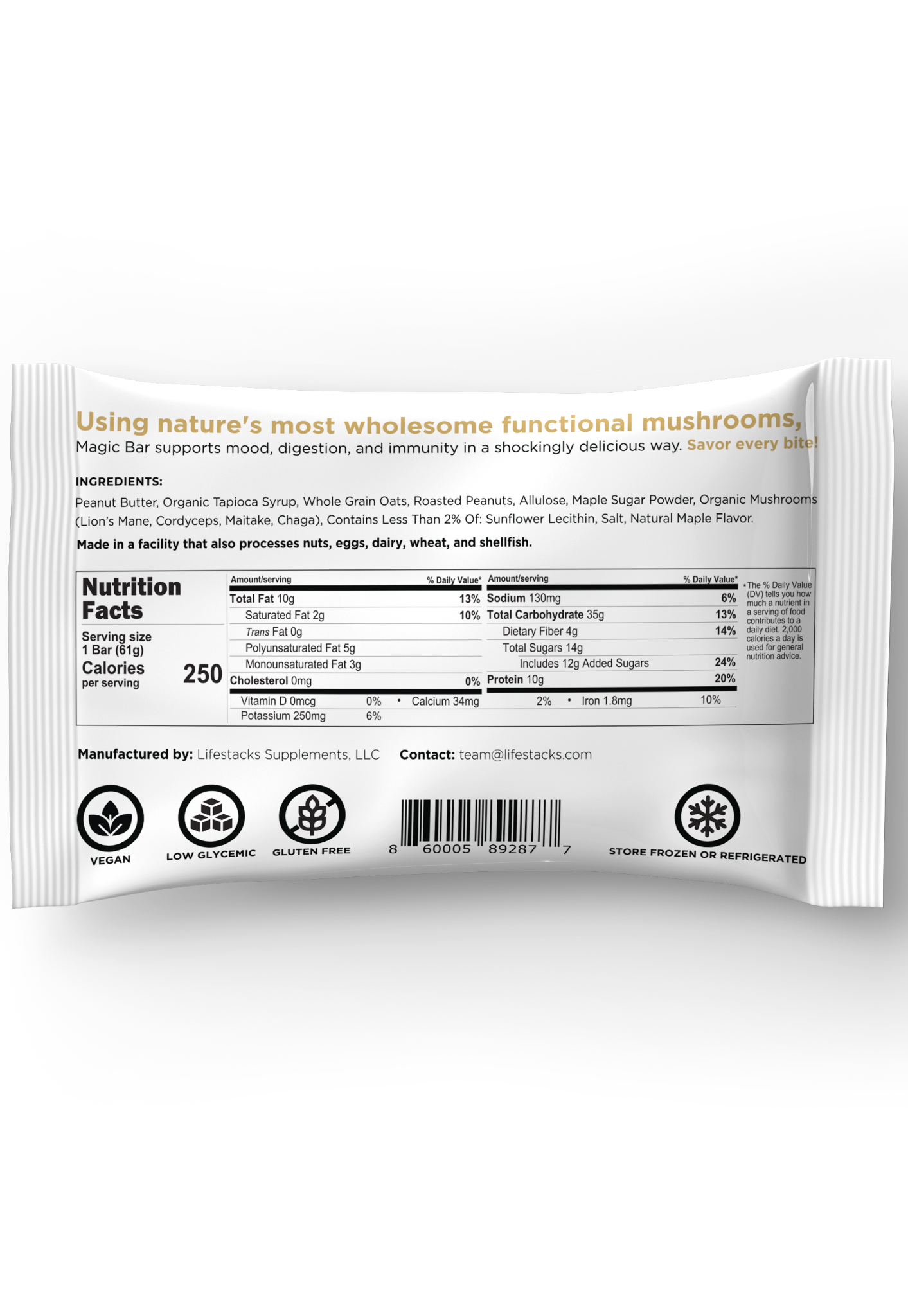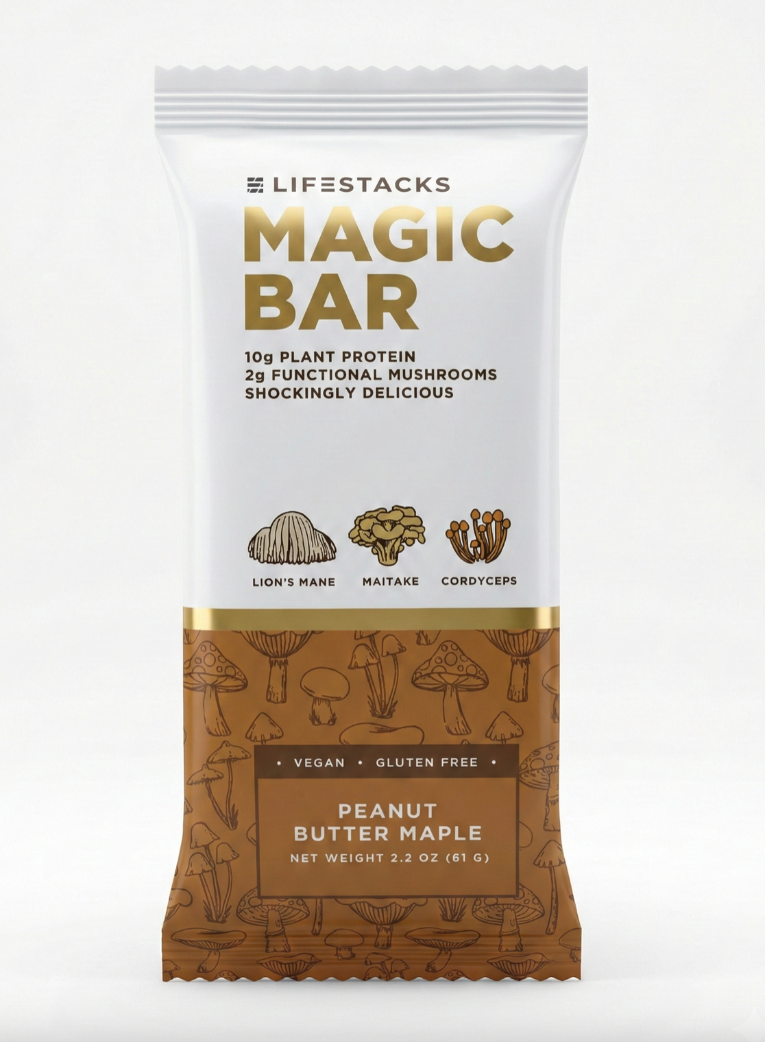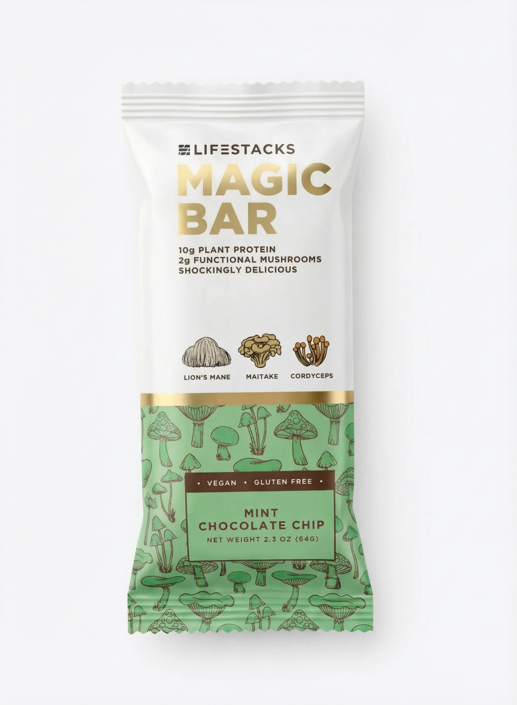 Magic Bar isn't just a delicious snack. It's a functional food crafted with 10G of plant protein and full doses of three organic mushrooms: Lion's Mane, Maitake, and Cordyceps. These ingredients boost immunity and gut health so you can feel good while snacking. Magic Bar is backed by science and designed for those who crave both flavor and function.